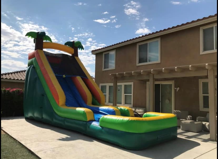 The Tropical water slide will be a thrill for your next event. The 18' climb with an exciting drop to our attached pool will bring out the thrill for both young and old. Attach the water hose and increase the speed to the pool. The attached pool area that can be filled with ball pit balls for dry use as well.